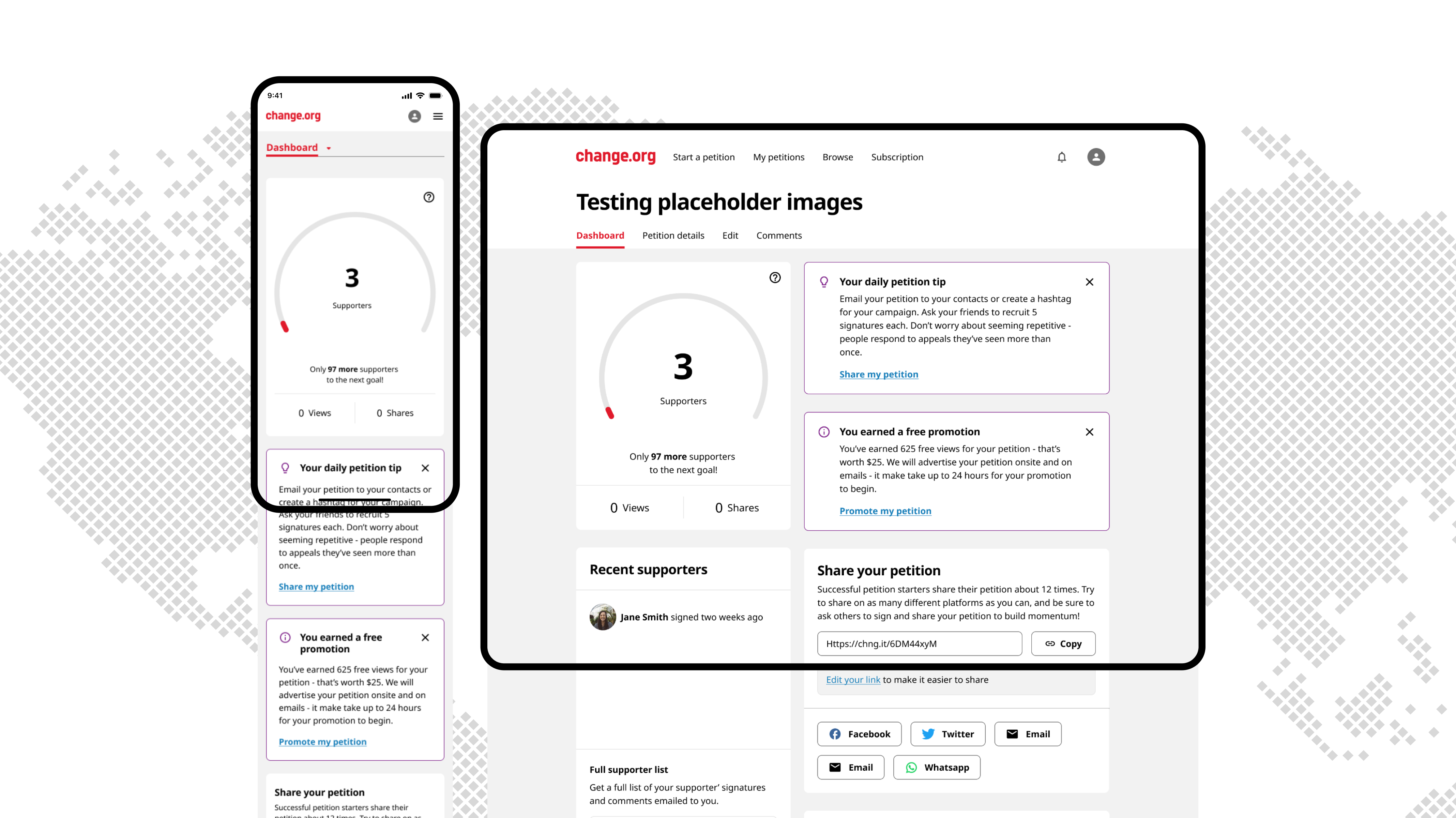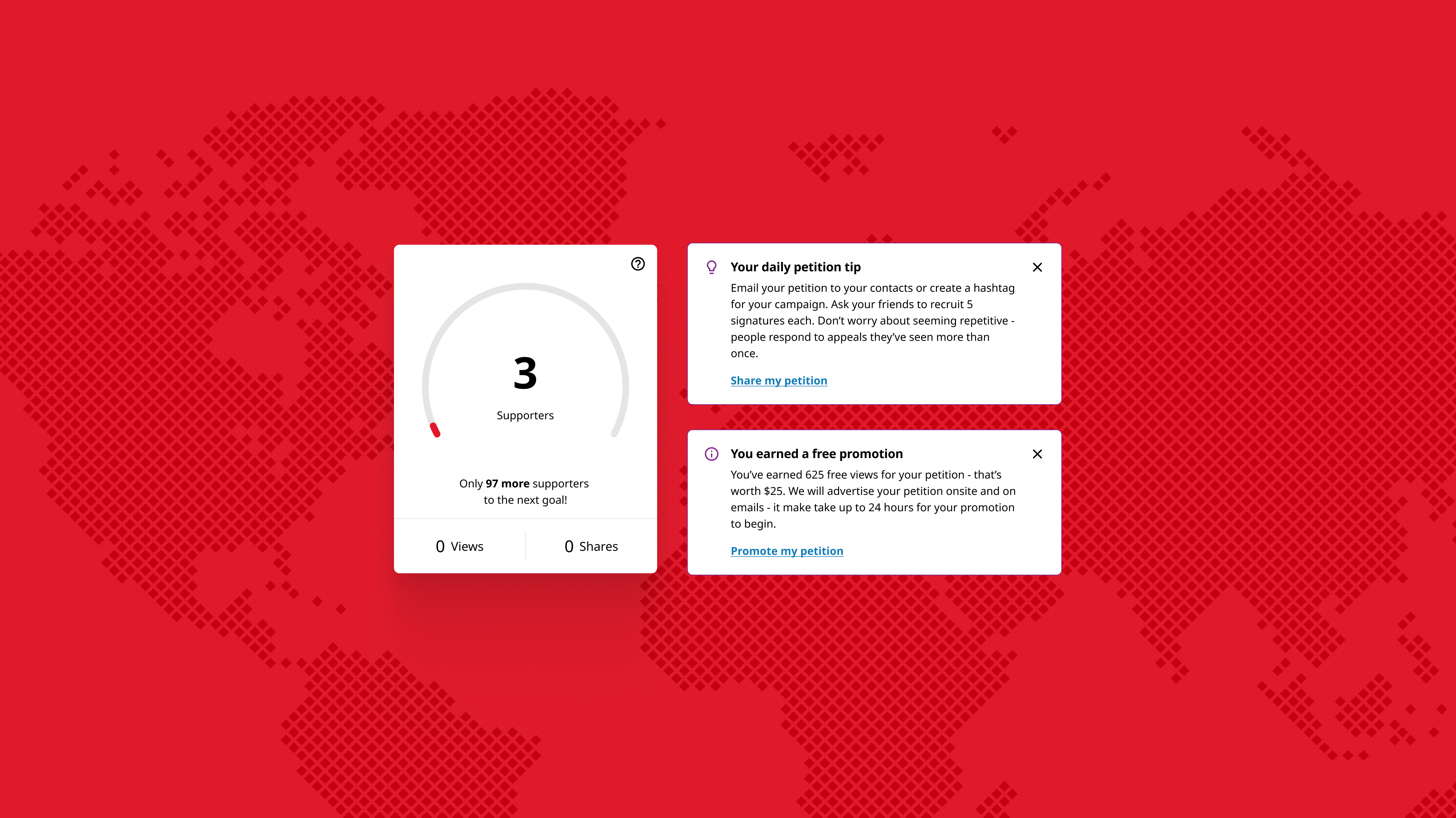 User dashboard to track petition traction