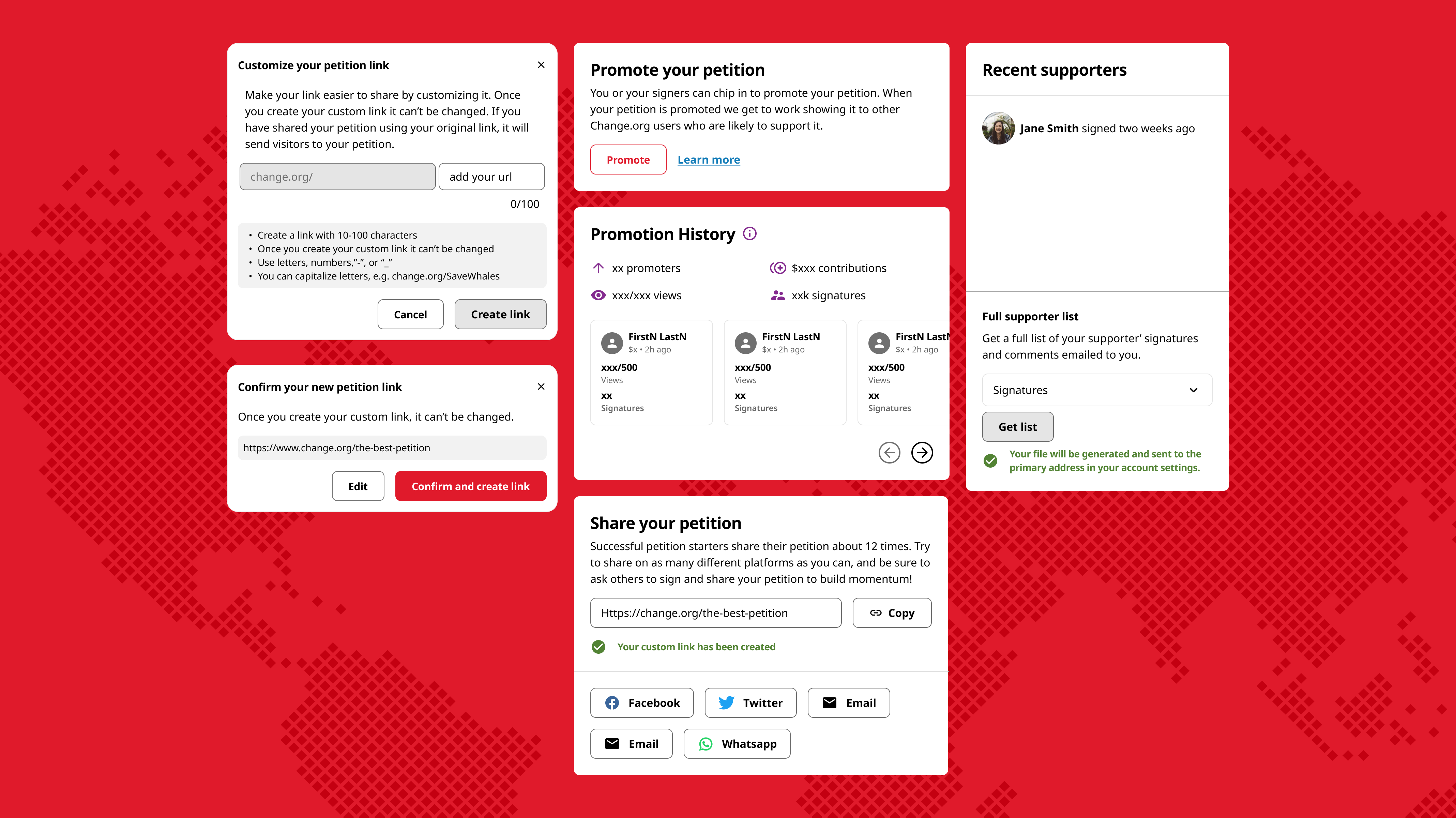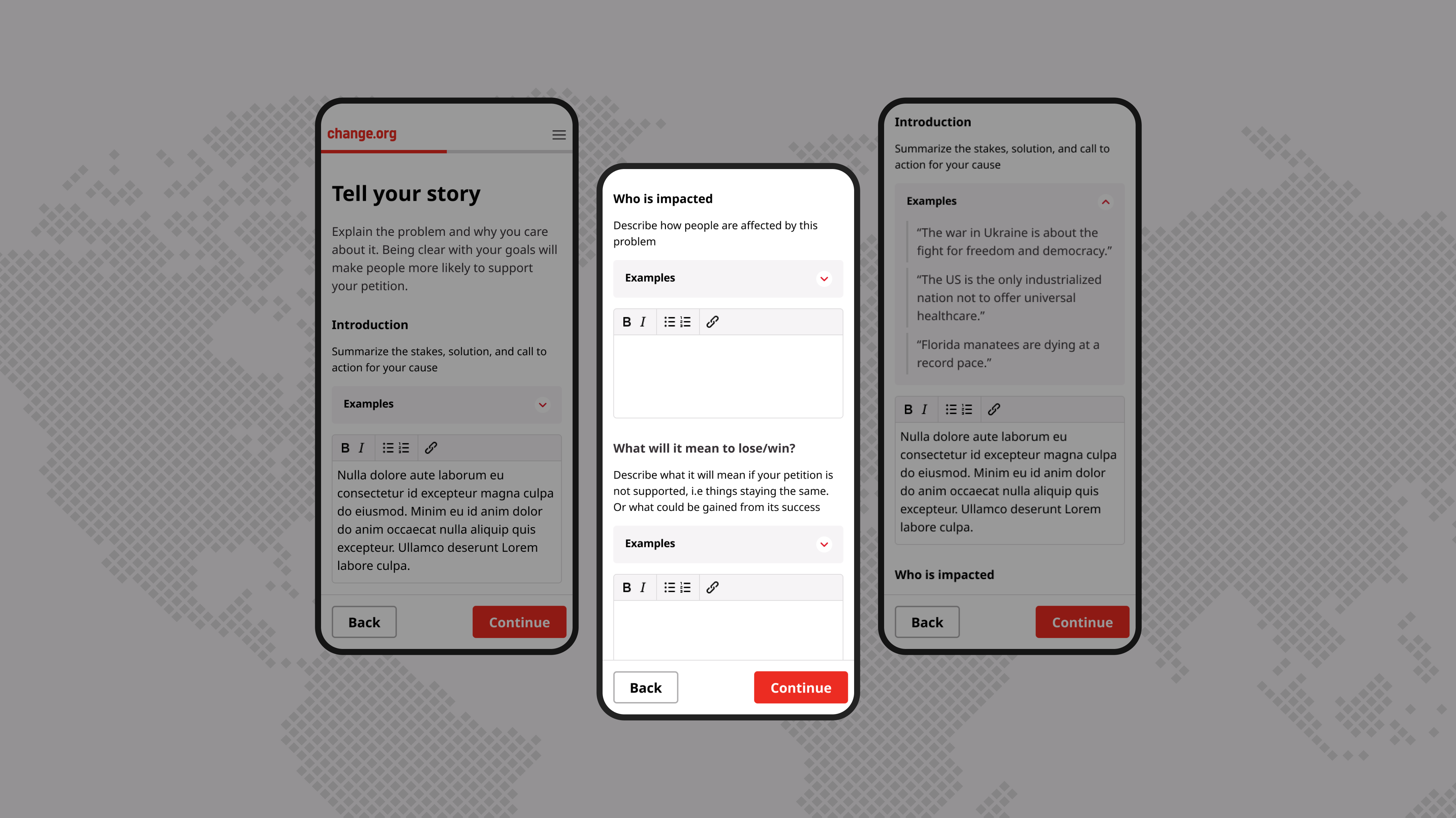 Design optimizations for a global petition platform; integrating early AI Assistive functionality to help users complete petitions.
